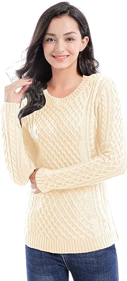 Crew Neck Sweater- Stylish Honeycomb Cable Knitted Make you Look Elegant and Slim